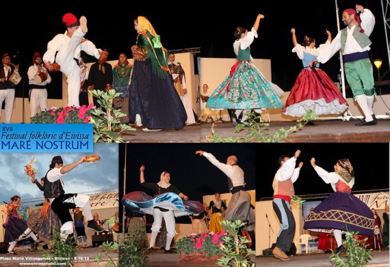 VICENT TORRES - SANTA EULÀRIA - Ibiza se convirtió ayer por decimoséptima ocasión en la capital mediterránea del folclore tras la jornada que cerró la última edición del Festival Folklòric d´Ibiza Mare Nostrum, que reunió a cinco colles de ball pagès de la isla y a cuatro grupos folclóricos procedentes de diferentes puntos de España. Tras la primera actuación el sábado en el parque Marià Villangómez, el festival cerró con actuaciones a las 12 horas en Sant Eulària, Sant Joan, Sant Antoni y Sant Agustí de un grupo foráneo y otro ibicenco en cada localidad.