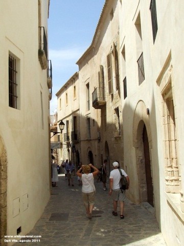 Esta ruta está ideada para pasear y perderse en el encanto de las callejuelas medievales de Dalt Vila. Se inicia el paseo por el Pasaje de Simó Pouet y girando a la derecha para llegar a la Plaça de Vila, antiguo mercado conocido también con el nombre de Plaça de les Ferreries, en el que encontraremos tiendas, terrazas de bares y restaurantes.Se continúa por la Calle de Santa Creu hasta las de Sant Antoni y Santa Ana. La estrechez de estas calles, su configuración arquitectónica y su pavimento de piedras son algunos de los elementos que ayudan al visitante a evocar tiempos pasados.