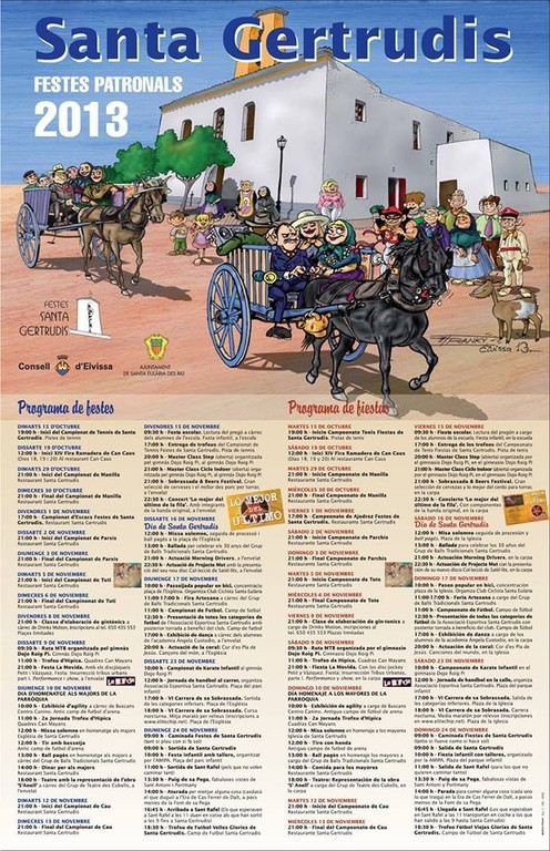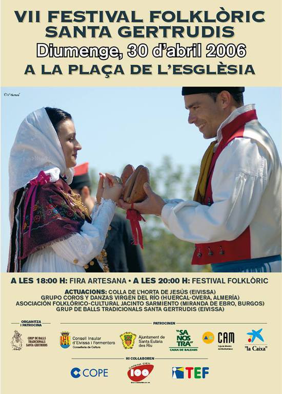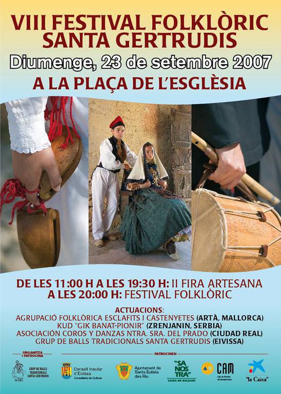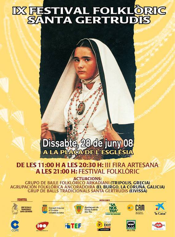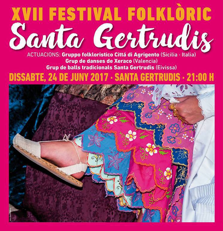 Santa Gertrudis acogió la noche del sábado la XVII edición del Festival Folklòric en la que actuaron como grupos invitados los sicilianos del Gruppo folkloristico Cittá di Agrigento y los valencianos del Grup de Danses de Xeraco. Como anfitriones del festival, los componentes de la colla de Santa Gertrudis ofrecieron también su repertorio de ball pagès. La velada se inició con un pasacalles de los grupos participantes hasta llegar a la plaza.