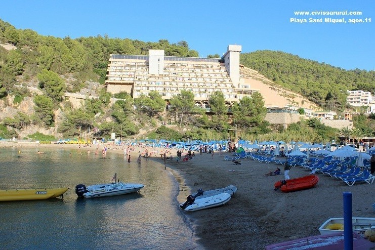 Alrededor del Port de Sant Miquel se ha levantado un importante enclave turístico que disfruta del magnífico arenal que se extiende a sus pies. Es una playa familiar que ofrece los servicios necesarios para disfrutar de todas sus posibilidades. Ideal para practicar deportes náuticos, cuenta con buenos restaurantes donde degustar lo mejor de la gastronomía pitiusa. No deje de visitar la Cova de Can Marça.