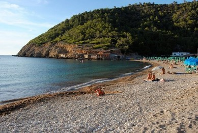 Una playa prácticamente virgen, en la que tienes que descender un sendero de unos 50 metros sobre el nivel del mar, lo que asegura una tranquilidad y aguas totalmente limpias. Es una playa pequeña, tiene unos 40 metros de longitud. Al lado, hay unas casetas de pescadores, sin ninguna duda, un lugar para disfrutar de la belleza de Ibiza.