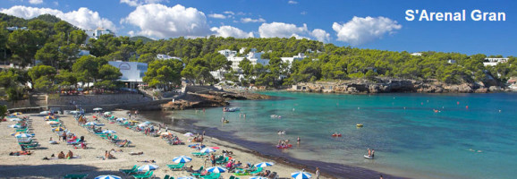 S’Arenal Gros o s’Arenal Gran está junto a la localidad de Portinatx, situado entre Cala des Portitxol y s’Arenal Petit –un paseo marítimo une esta playa con su hermana menor. Las puntas Galera y de sa Torre forman los flancos de entrada a Cala Portinatx, en cuyo interior hay diversas calitas, siendo la segunda de éstas la que nos ocupa y, a su vez, la de mayores dimensiones de todos sus rincones costeros. La zona externa de Cala Portinatx es un lugar excelente para practicar deportes de vela. Esta cala rodeada de establecimientos turísticos tiene disposición de amplia ensenada, talud de arena blanca y de grano medio, con algunos pinos, escasa pendiente (a 25 metros mar adentro se alcanza un metro de profundidad), fondo arenoso, menos en el margen izquierdo donde se imponen las rocas, y con predominio de un viento flojo de componente sur, que sopla de tierra a mar. Estas peculiaridades morfológicas convierten este tramo de litoral en muy seguro para los niños y las personas de edad avanzada, así como para la práctica de buceo de superficie. El acceso por carretera es sencillo siguiendo atentamente la señalización viaria. El vehículo particular se podrá estacionar gratuitamente por los alrededores. También se puede llegar en autobús, cuya parada más próxima se encuentra a un hectómetro de distancia. Desde s’Arenal Gros se puede llevar a cabo excursiones en barco hacia Cala Xarraca y Cala Xucla. Las características descritas anteriormente explican la afluencia masiva de bañistas locales y turistas