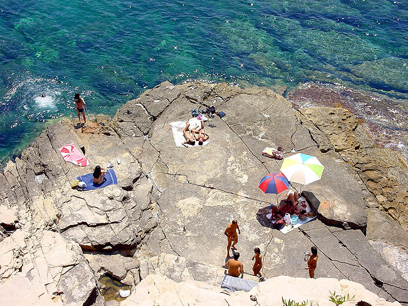 Se encuentra en la base de un escarpado acantilado. Está formada por enormes losas de piedra de diferentes alturas, surgidas de la explotación de una antigua cantera, que hoy constituyen terrazas naturales perfectas para tomar el sol y bañarse en sus cristalinas aguas. Un lugar muy poco frecuentado, que se ha convertido en uno de los preferidos para la práctica del nudismo. Si busca quietud y silencio, esta puede ser su mejor elección. Dimensiones: 20 m. de longitud y 3 m. de anchura Orientación: Oeste -Noroeste.