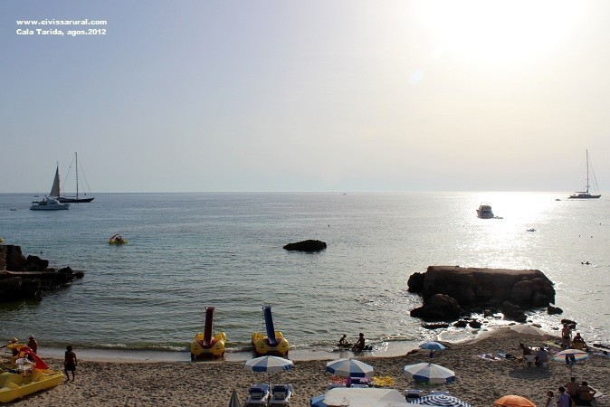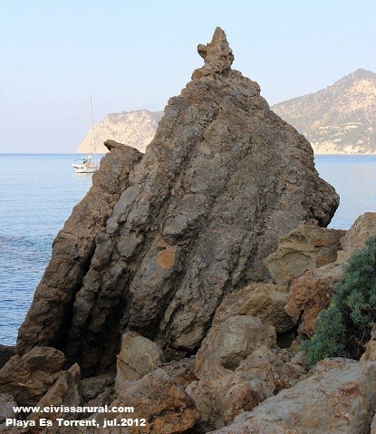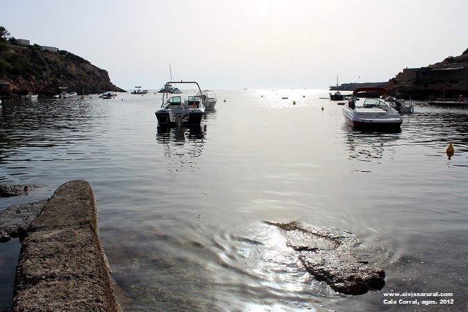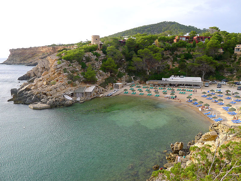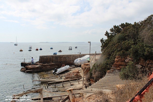 Rodeada de bosques de pinos y vegetación mediterránea, desde esta pequeña cala y los acantilados próximos se disfruta de unas vistas inmejorables del islote de s'Espartar y la costa oeste de la isla. Un lugar tranquilo para darse un baño y relajarse. Dimensiones: 75 m de longitud y 35 m de anchura.