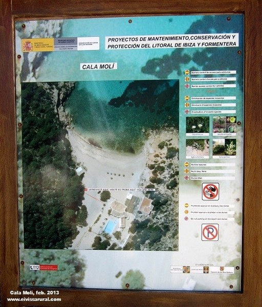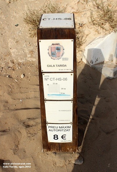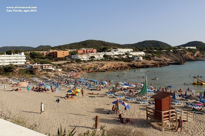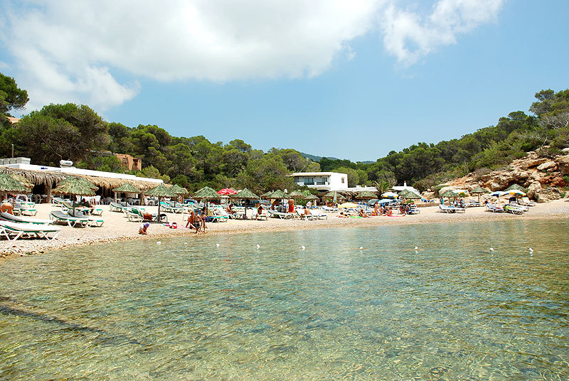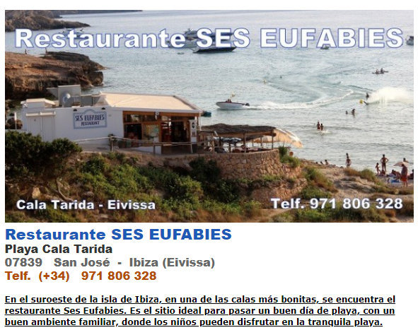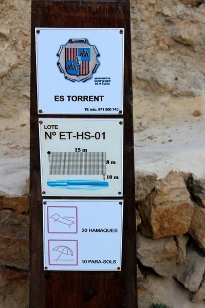 Composición (sustrato): Arena fina natural de color claro. Fondo marino: Arena, escasa profundidad y pendiente suave Entorno: Residencial turístico. Localización: A 6 Km. de Sant Josep
