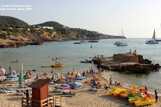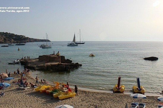 Fondo marino: Alternancia de arena, cantos rodados, rocas y vegetación submarina. Profundidad moderada y suave desnivel. Entorno: Natural; residencial; turístico. Localización: A 7 km de Sant Josep y a 24 km de Eivissa