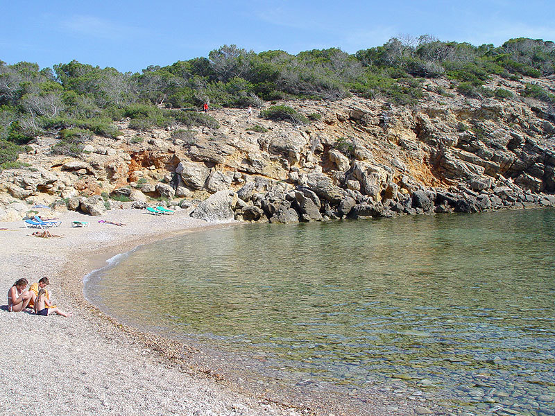 Pequeña calita, muy protegida, rodeada de bosques de pinos. Tranquila y familiar, es muy apropiada para ir acompañado de niños y disfrutar de la gastronomía popular en los dos chiringuitos existentes. Aproveche para darse un relajante masaje a la orilla del mar. Dimensiones: 60 m. de longitud y 50 m. de anchura