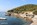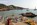 grava, cantos rodados y algo de arena, pendiente muy pronunciada (el agua enseguida cubre hasta el cuello), así como por estar envuelta de acantilados agrestes, altos y de color ocre y tostado. La